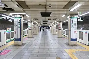 The station facilities were inherited by Tokyo Metro after the privatization of the Teito Rapid Transit Authority (TRTA) in 2004.[1]
