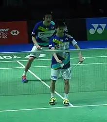 Yuta Watanabe (渡辺 勇大, Watanabe Yūta, born 13 June 1997) is a Japanese badminton player.[1] He is a member of the Nihon Unisys team, and national team A representative.[2] Known for his quick and explosive movements with signature drop shots on court, Watanabe has won the mixed doubles bronze medal at the 2020 Summer Olympics,[3] as well as being three-times BWF World Championships medalists.