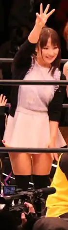 On September 7, 2010, Aikawa, then known primarily as a gravure idol, announced that she was transitioning to professional wrestling, having begun training the previous May under retired professional wrestler, mixed martial artist and model Fuka Kakimoto.[3] Aikawa, with a background in classical ballet and taekwondo, had first become interested in professional wrestling, after seeing All Japan Pro Wrestling's 2008 Champion Carnival tournament.[3] On September 7, Aikawa appeared at the first press conference for Fuka's and Rossy Ogawa's new World Wonder Ring Stardom promotion, officially being announced as part of its roster. During the press conference, veteran wrestler Nanae Takahashi accepted Aikawa's request to become her opponent for her upcoming debut.[20] After six months of training under Fuka and Nosawa Rongai,[18] Aikawa made her much anticipated professional wrestling debut on October 31, 2010, in the main event of her self-produced Yuzupon Matsuri show, facing Nanae Takahashi.[2][21] After a fourteen-minute beatdown, Takahashi pinned Aikawa for the win and afterwards declared that since her opponent, now with her left eye swollen shut and with a severely bruised face and chest, had withstood the punishment, she had "paid her dues" and was ready to become a true professional wrestler.[5][22] On January 23, 2011, Aikawa made her debut for Stardom at the promotion's first event, being pinned by Takahashi in a tag team match, where she and Natsuki☆Taiyo faced Takahashi and Iris.[23][24] The second Yuzupon Matsuri event took place on February 6 and saw Aikawa defeat veteran Yumiko Hotta in the main event for the first win in her career.[25] Six days later, Aikawa took her first win in Stardom, defeating Eri Susa.[23] On April 24, Aikawa made her debut as the masked character Yuzupon Mask, a female version of Tiger Mask, wrestling nine-year-old Haruka to a three-minute time limit draw.[26] On May 15, Aikawa wrestled Ayumi Kurihara to a twenty-minute time limit draw in the main event of the third Yuzupon Matsuri.[27][28] On June 12, Aikawa formed the tag team BY Hou ("BY Cannon", a name inspired by Antonio Inoki's and Giant Baba's old BI Hou tag team)[29] with Yoko Bito, with the two defeating Mayu Iwatani and Nanae Takahashi in their first match together.[26] On June 26, Aikawa and Bito defeated Kawasaki Katsushika Saikyou Densetsu (Natsuki☆Taiyo and Yoshiko) to earn the title of Stardom's top tag team.[26] On July 24, Aikawa defeated Yoshiko in a decision match to become the inaugural Wonder of Stardom Champion.[26][30] Later that same day, Aikawa made an appearance for DDT Pro-Wrestling as a member of the TKG48 stable, wrestling in a fifteen-person Ironman Heavymetalweight Championship battle royal, from which she was eliminated by Emi Sakura.[31]