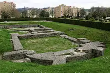 The imposing Castrum, or stronghold, called Castrum Ebredunense was the second largest in Switzerland and demonstrated the importance the Romans attached to Yverdon. The port served as naval base for the barges supplying the defensive positions along the Rhine, which marked the North-Eastern border of the Empire. Thus the Roman "Vicus" of Eburodunum developed into a prosperous urban centre. The sulphur springs were already used for a thermal spa, as attested by excavations.[5] It is even possible that the Helvetii appreciated the beneficial effects of these waters.[6]