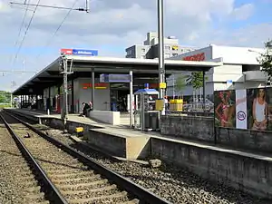 In 2010, the station was rebuilt with the introduction of a convenience store and parking for 130 bicycles. The store is open 365 days a year from dawn to dusk and is part of the Migrolino chain owned the Migros company.[4] The former station building (Alter Bahnhof) is situated to the west of the current location, on the opposite side of Zehntenhausstrasse.