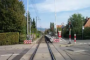The station has a single track, and a single platform. The only building is a simple shelter on the platform. Immediately to the west of the station, the line crosses Schweighofstrasse by means of a level crossing.[3]