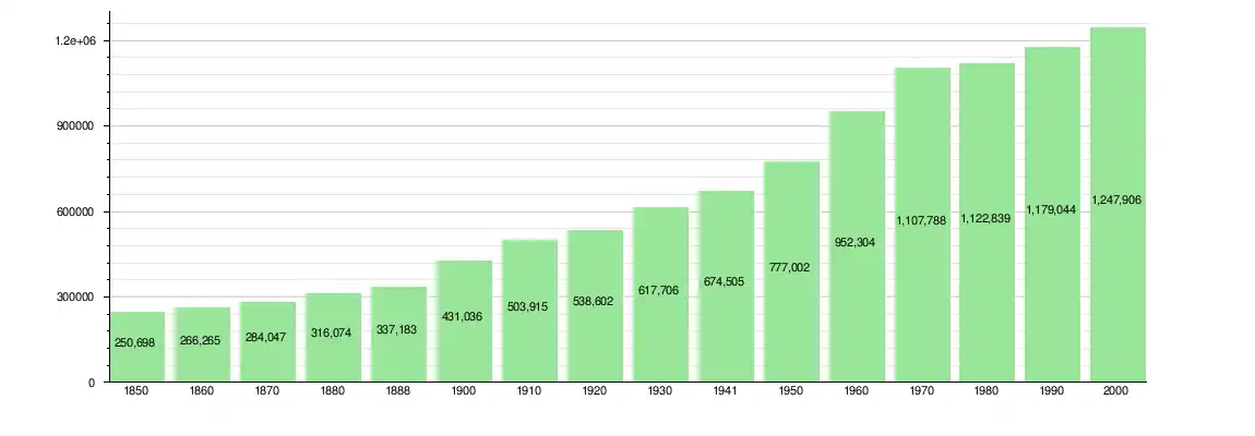 Zürich has a population (as of December 2020) of 1,553,423.[3] As of 2010, 23.7% of the population are resident foreign nationals. Over the last 10 years (2000–2010) the population has changed at a rate of 12.7%. Migration accounted for 10.3%, while births and deaths accounted for 2.6%.[10]