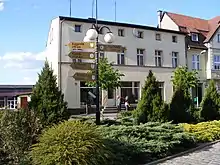 In 1919, it was decided that the eastern part of the Flatow district would be ceded to Poland and the western part of the district, including the town of Flatow would remain in Germany. This caused huge protests from the large Polish minority of the town (approx. 12%) and the surrounding rural lands. From 1922 until 1938, Flatow was part of the newly formed Province of Grenzmark Posen-West Prussia inside Germany. When this province was dissolved on 1 October 1938, Flatow was integrated into the Province of Pomerania. Despite this, the town became the seat of local branches of the Union of Poles in Germany and the Polish-Catholic School Society.[2] Local Poles managed to establish a Polish school, preschool,[2] library[3] and the Sparta Złotów football club (multi-section club after the war). Polish press was still issued in the town.[2] The Polish school was devastated by the Germans in the 1930s,[4] and the local synagogue was destroyed during the Kristallnacht in 1938. In 1939, shortly before the invasion of Poland, local Polish activists and teachers were arrested and later imprisoned in Nazi concentration camps.[5] In the last months of World War II, the town was captured by Polish troops in the Battle of Złotów on 31 January 1945 and was finally reintegrated with Poland.[2]