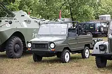 A pre-production batch of fifty was created in 1965, dubbed ZAZ-969, and production was authorized in 1966 as the 969V.[1] It was built by ZAZ until 1971, when LuAZ took over.[1] When LuAZ took over production (making it the LuAZ-969), four-wheel drive became standard.[3] In 1975, the LuAZ-969A replaced the original 969, offering a new 40 hp (30 kW; 41 PS) 1,197 cc (73.0 cu in) MeMZ 969 four-cylinder engine.[3] It survived until 1979.[3] This was followed by a hard-top panel van version in 1977, known as the 969F, with a 400 kg (880 lb) payload, which was only built in small quantities.[3]