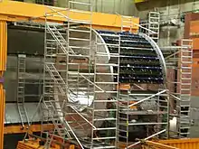 The German national laboratory DESY was founded in 1959 and started operating its first particle accelerator in 1964. Since then, it has been a highly regarded center for particle physics, photon science, astroparticle physics, and the development, construction and operation of particle accelerators. The design effort for ZEUS can be traced back to 1982.[2] A Letter of Intent was submitted in 1985.[3] The ZEUS detector was operational with the first collisions of the HERA collider in 1992. The last electron–proton collisions at ZEUS were recorded on 30 June 2007.[4] The other multi-purpose experiment at the HERA collider was the competing H1 experiment. Since May 2012, the former ZEUS detector hall has been used as a lab space for the international European XFEL project.[5]