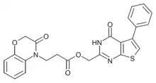 ZINC17988990 is a drug which acts as a potent and selective inhibitor for the TRPV5 calcium channel, with an IC50 of 177 nM and high selectivity for TRPV5 over TRPV6 and the other subtypes of TRPV. It is the first selective inhibitor to be developed for TRPV5, and may be useful for modulating calcium reabsorption in the kidneys.[1]