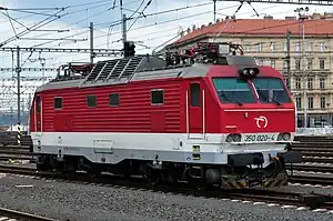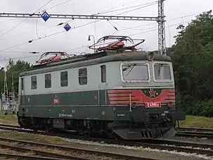 The ZSSK Class 350 (prior to 1988: ČSD Class ES 499.0) is an electric locomotive of the Železničná spoločnosť Slovensko (Slovakian Railway Company) and previously of the Československé státní dráhy (Czechoslovak State Railways). Introduced in 1974, they became the first dual-system locomotives in Czechoslovakia, and have been used to haul express trains on the Bratislava - Prague railway corridor since then.