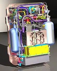The RCA swing bed removes carbon dioxide (CO2) and controls humidity.[15] The RCA CO2 removal capability is regenerated during EVA by exposure to vacuum, making it superior to previous systems.[15] To remove CO2, the current EMU has to use either a lithium hydroxide (LiOH) canister or a Metal Oxide (Metox) canister.[15] The LiOH canister can only be used once.[15] The Metox canister can be reused post-EVA but to do so takes fourteen hours and requires auxiliary equipment, crew time and significant electricity.[15] RCA is expected to weigh less than current comparable systems.[15]