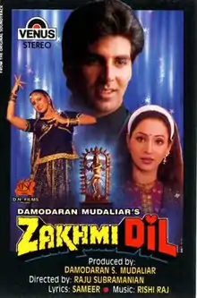 Zakhmi Dil is a 1994 Indian Hindi action film directed by Raju Subramaniam.[1] It stars Akshay Kumar, Ravi Kishan and Ashwini Bhave in lead role.[2]