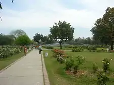 Zakir Hussain Rose Garden, is a botanical garden in Chandigarh, India and spread over 30 acres (120,000 m2) of land,[1] with 50,000 rose-bushes of 1600 different species.[2] Named after India's former president, Zakir Hussain and created in 1967 under the guidance of Mohinder Singh Randhawa, Chandigarh's first chief commissioner, the garden has the distinction of being Asia's largest.[2] The garden has not only roses, but also trees of medicinal value. Some of the medicinal plants that can be spotted here are bel, bahera, harar, camphor and yellow gulmohar. The rose plants have been planted in carved-out lawns and flower beds.