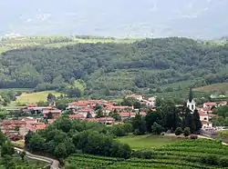 In the northern part of the village, there is a large building that used to be a monastery in the 16th and 17th centuries.[3] There is an Austro-Hungarian military cemetery from the First World War on a small hill next to Saint Lawrence's Church. The individual grave markers are no longer present, and only the central monument remains.[3][4]