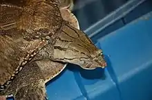 The Zambezi flapshell turtle (Cycloderma frenatum) is a species of softshell turtle in the family Trionychidae). Within its family, C. frenatum belongs to the smaller, and exclusively Old World, subfamily Cyclanorbinae.
