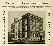 The Zanerian Art College offered both Diploma courses aimed at producing professional penmanship teachers as well as Certificate courses aimed at producing pen art specialists.[3] The graduates of these programs often continued on to be influential American penmen in their own right, granting the Zanerian a reputation for excellence. Notable students of the Zanerian Art College have included the likes of E. A. Lupfer, W. A. Baird, C. W. Norder, and other well-known American penmen.