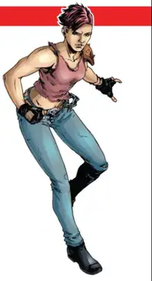 She has short naturally auburn hair,[5] which has been dyed pink (or sometimes red), and is usually depicted with a tattered hot pink T-shirt and blue pants, colors that match her twin brother, Zandar. She is the firstborn of the twins, and often the unequivocal leader of the two.[6] Zarana is protective of Zandar.[7] She supposedly also has the same ability to change skin color as her brothers, but this was never portrayed in either her comic book or cartoon incarnations. According to former G.I. Joe product manager Kirk Bozigian at the 2013 Official G.I. Joe Convention, Zarana's original filecard art was inspired by 80's punk rock singer Wendy O. Williams.