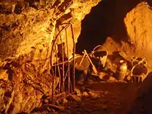 The karst process results in a unique microclimate of caves, characterized mainly by springs and carbon dioxide in the lower parts of the cave area, creating gas reservoirs.[3] Some of the lower part of the caves are filled with carbon dioxide permanently. The concentration of carbon dioxide in the cave commonly reaches 40% by volume; more than 8–10% is fatal to humans. An integral part of the security measures, therefore, is the daily measurement of carbon dioxide and adapting workers and visitors to the current situation.[9]