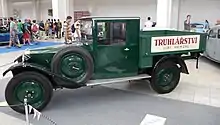 Zbrojovka built cars and light commercial vehicles with two-stroke engines. The first model was the Disk, which was a two-door light car with a four-cylinder, 598cc, 10 horsepower (7.5 kW) engine launched in 1924.[3] This was succeeded in 1926 by the Z 18, which was a two-door sedan powered by a two-cylinder, 1005 cc engine producing 18 horsepower (13 kW).[4] This was succeeded in 1929 by the Z 9,[5] which had a 993cc engine producing 22 horsepower (16 kW).[6] Body options for the Z 9 included a four-door sedan or convertible, two-door, four-seat sedan, two-seat convertible and a commercial light truck.[7]