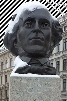 Picture of Mendelssohn statue with zebra patterning