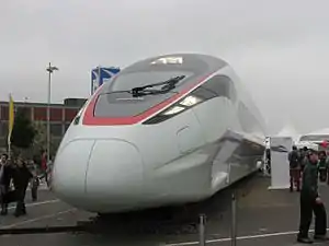 The first variant of the Zefiro concept to be produced was a series of twenty 16-car EMU sleeper trains produced by Bombardier's joint venture Sifang Power (Qingdao) Transportation (BSP), which were delivered from 2009.[15] These trains were the first high-speed train licensed to be manufactured in China as well as the fastest sleeper trains in the world.[16] China Railways designated them as CRH1E.[17]