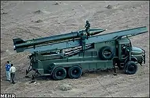 Zelzal-1 (Persian: زلزال-۱, meaning "Earthquake-1") is an Iranian-made heavy artillery rocket with an estimated range of 160 km.[1] It is believed to be owned by the Iranian Armed Forces and Hezbollah. The rocket received relatively little use but was the basis for the more successful Zelzal-2 artillery rocket.