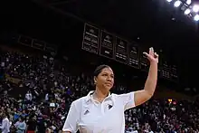 Now going by her married name, Antoine joined the staff of new head coach Tom Collen at Louisville as recruiting coordinator on June 24, 2003.[6] As the lead recruiter, Antoine put together two nationally ranked recruiting classes in her last two seasons, no. 26 in 2006 and no. 25 in 2007.[3] Antoine then followed Collen to Arkansas in 2007 and served four years under Collen as assistant coach.[3]