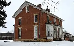 The Zephaniah Kidder House is a historic building located in Epworth, Iowa, United States. A Maine native, Kidder settled in Iowa in 1853 after spending time in California. He was one of three men who established the town of Epworth on their land holdings in 1855.[2] Kidder was also instrumental in founding the Epworth Seminary, and was involved in a variety of business ventures. Kidder was involved in the construction of this house, completed in 1868. It is a 2½-story structure built of locally produced brick. The house features a symmetrical plan, side gable roof, bracketed eaves, and two interior brick chimneys. The main facade is three bays wide, with protruding bay windows on the first floor, and the main entrance has sidelights and transom that is covered by a flat-roofed porch. The second floor has windows with keystone drip moldings. The house was listed on the National Register of Historic Places in 1978.[1]