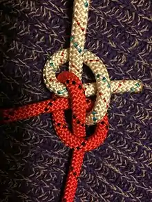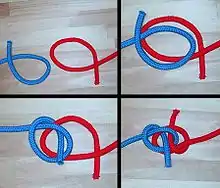 A zeppelin bend (also known as the Rosendahl Bend) is an end-to-end joining knot formed by two symmetrically interlinked overhand knots. It is stable, secure, and highly resistant to jamming.[1] It is also resistant to the effects of slack shaking and cyclic loading.