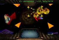 The second mode is an on rails shooter segment that takes place in a first-person perspective, where involves the player controlling the Hit-Pak space cruiser and its gun turrets in environments of 360°. Like the first mode, the objective is to survive multiple waves of enemies that appear in all directions or destroying space debris to protect the ship, however there are no energy pods to be collected to regenerate shields and the player must keep focused on the radar, which displays the ship's shields and enemies. The missions involving Hit-Pak are broken into different segments, with some alternating between different playstyles.[4]