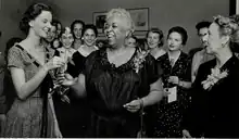 Actress Ethel Waters being initiated as an honorary member of Zeta Phi Eta in May 1956 - Marcelline Hemingway Sanford - sister of author Ernest Hemingway (Beta Chapter)[2]
