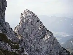 The Zettenkaiser is a 1,968 m high mountain with a summit cross in the Kaiser Mountains (Kaisergebirge) in the Northern Limestone Alps in Austria. It rises to the west of the almost 150-metre-higher Scheffauer, from which it is separated by a col. It is one of the more rarely visited summits in the Kaiser. There are great views south to the main chain of the Alps, north to the Zahmer Kaiser and west into the Inn Valley; to the east at the foot of the summit is the rock needle known as the Kaindlnadel and then the mighty Scheffauer.