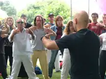 ![]() Zhàn zhuāng training on the World Tai Chi and Qigong Day, Israel. The people in the picture hold the Hún Yuán posture, also known as Chēng Bào. | |||||||