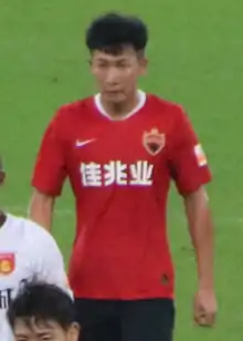 After being scouted by Liu Chunming, he would include him in his squad that part in the 2008 AFC U-19 Championship where he would play three games and score one goal against Tajikistan in a tournament that saw China get knocked out in the quarter-finals.[14] He would go on to be promoted to the Chinese under-23 national team and take part in the 2010 Asian Games, where he was used in defense by the manager Sun Wei, nevertheless he would go on to play in all four games for China where they were knocked out in the last sixteen. His promotion within the national team would continue when he made his debut for the Chinese national team on 6 September 2012 when he played in a friendly match against Sweden in a game that China lost 1-0.[15]