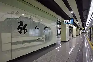 Zhangjiang Road (simplified Chinese: 张江路; traditional Chinese: 張江路; pinyin: Zhāngjiāng Lù) is the current eastern terminus station on Line 13 of the Shanghai Metro,[1] and is the current eastern terminus of the line. Located at Zhongke Road and Zhangjiang Road in Pudong, Shanghai, the station opened with the phases 2 and 3 extensions of Line 13 on 30 December 2018.[2][3]