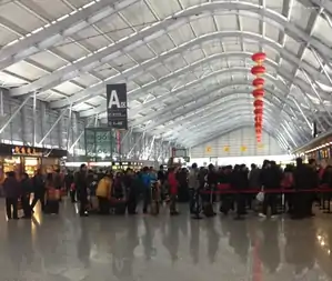 The Zhengzhou Airport riot occurred on 5–6 February 2014. Passengers at the airport in Zhengzhou, capital of the Chinese province of Henan, angry over lengthy delays due to snowy weather, smashed computers at airline check-in counters and destroyed information kiosks. It has been estimated that as many as 2,000 people took part over two days before police were able to restore order.[1]