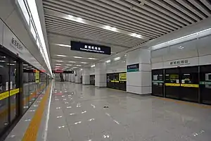 The airport rail link services between Zhengzhou city center and the airport became available after the completion of the ground traffic center in 2015, including the Zhengzhou–Xinzheng Airport intercity railway, which started operations from 31 December 2015 and served as an express link,[17] and Zhengzhou Metro Chengjiao line, which started operations from 12 January 2017.[18]