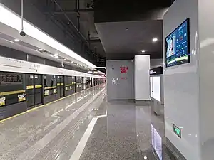 Zhenxin Xincun (Chinese: 真新新村) is a station that is part of Line 14 of the Shanghai Metro. Located at the intersection of South Qilianshan Road and Tongchuan Road in the city's Jiading District, the station opened with the rest of Line 14 on December 30, 2021.[1][2] It is currently the terminal station of the short-route trains of Line 14.