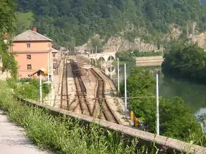 Zidani Most railway station (Slovene: Železniška postaja Zidani Most) is an important railway station and junction in Zidani Most, which is located within the municipality of Laško, Slovenia. The station lies close to the confluence of the Sava and Savinja Rivers. Its importance is because most non-direct train services linking the east with Ljubljana connect here.