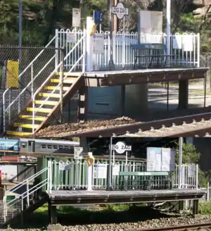 Zig Zag railway station is a railway station located on the New South Wales Main Western Line. It was originally built in April 1878 and closed in 1910 due to the opening of the Ten Tunnels Deviation which bypassed the original site of the station. The station was not rebuilt until 1959 when a new station was built alongside the 1910 alignment in a similar location to the 1878 station.[2]