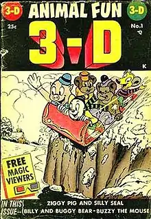 Silly Tunes #7 (April 1947) marked their final Golden Age appearance. After this era, they reappeared in the one-shot 3-D comic book, Animal Fun 3-D (Dec. 1953), from Premier Magazines.[10] Ziggy and Silly also appeared in issues of the unauthorized reprint titles Billy And Buggy Bear, Wacky Duck, Super Rabbit, and Ziggy Pig from Israel Waldman's I. W. Publications / Super Comics, for a short time beginning in 1958.