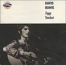 "Ziggy Stardust" is the ninth track on the Bowie's fifth studio album The Rise and Fall of Ziggy Stardust and the Spiders from Mars, released on 16 June 1972 by RCA Records.[24][25] The original recording was never released as a single,[26] but a live version recorded at Santa Monica Civic Auditorium during the Ziggy Stardust Tour was released as a single in France and the United States in 1994 to promote the bootleg album Santa Monica '72 (1994).[2] This version was accompanied by a video compiled from live footage shot at Dunstable Civic Hall on 21 June 1972 which, according to Pegg, offers "fascinating glimpses of an early Ziggy show in action."[27] In the wake of Bowie's death in 2016, the song peaked at number 86 on the Portuguese AFP chart, number 75 on the Billboard Japan Hot 100 and at number 17 on the US Billboard Hot Rock Songs chart.[28][29][30]
