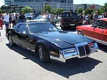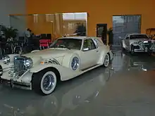 The Zimmer Golden Spirit was the flagship of the Zimmer Motor Cars Corporation during its production run from 1980[3] to 1988. While the original Golden Spirit was built using a Ford Mustang drivetrain, production began by cutting off or removing all body panels except the doors and roof. The chassis was then extended by 38" and new steering and brake components installed. Fiberglass body panels were manufactured by Zimmer and fitted along with chrome bumpers and other exterior parts. Interiors were re-trimmed in leather with Recaro seats and Nardi steering wheels, but otherwise carried the standard Mustang instrumentation.[5] While the majority of Golden Spirits were two-door hardtops, there were limited numbers of convertibles and t-top variants built with at least one four-door sedan and "personal limousine" known to have been built. The Mustang Vehicle Identification Number was retained as it met all the required US safety features at the time, and while Zimmer sold the vehicles on their own Manufacturer's Certificate of Origin, depending on the jurisdiction in which the vehicle was first registered, it may have been titled as a Zimmer Golden Spirit or a Ford Mustang.