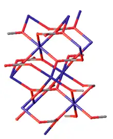 Zinc carbonate adopts the same structure as calcium carbonate (calcite).[7] Zinc is octahedral and each carbonate is bonded to six Zn centers such that oxygen atoms are three-coordinate.