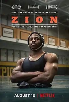 Zion is a 2018 short documentary film following Zion Clark, born without legs, growing up in foster care and becoming a wrestler.[1][2][3]