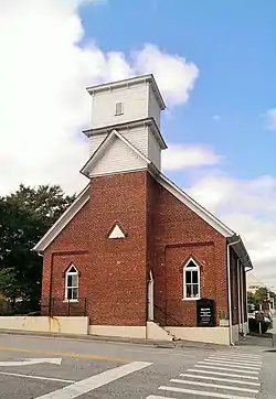 In 1865, African American members of First Baptist Church in Marietta, Georgia (many of whom had been slaves prior to the Civil War) petitioned the church for dismissal in order to form a black church under their own administration.[4] This dismissal was granted the following year and Zion Baptist Church was officially founded on April 8, 1866, with Reverend Ephraim Rucker as the church's first pastor.[4][5] The 88 original members of this congregation constructed a wooden church house on land donated by First Baptist.[6] In 1888, this building was converted to a brick church building.[5][6] This building would serve as the congregation's meeting house until 1978, when a new building was constructed across the street from this structure.[4] As membership continued to grow, another building was constructed by the church in 2007.[7] The 1888 building was added to the National Register of Historic Places on July 11, 1990.[1] Today, tours are given of the restored building, which occasionally hosts weddings.[6]