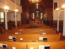 Zion Poplars Baptist Church is a historic Baptist church located near Gloucester, Gloucester County, Virginia. It was built in 1894 during the Reconstruction Era, and served more than just religious functions. As one of the oldest independent African American congregations in Gloucester County, Virginia, the church also served the economic and educational needs of its community. It was built in the Gothic Revival style with vernacular detailing, attributed to the handiwork of Frank Braxton, a former slave. The church gained its name from the historical origins of the church and congregation, because the first services were held under seven united poplar trees. Four of these trees still stand on church grounds today.[3]