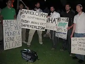 On November 13, 2008, violence erupted between ZFA and the Students for Justice in Palestine at an Israel Liberation Week event taking place at UC Berkeley.[10] The incident, which took place during a ZFA concert featuring Black, Jewish and Mexican hip hop artists promoting freedom for Israel from Western pressure and foreign influence,[11] began when anti-Israel students unfurled Palestinian flags from a balcony overlooking the concert stage. ZFA activists attempted to remove the flags and a fight broke out between the two organizations. While both groups accused the other of initiating the violence, both agreed that ZFA prevailed in the actual fight.[12] Following the incident, SJP members told Berkeley police that pro-Israel students made racial slurs against Arab students during the fight[13][14] but the charge was denied by ZFA leaders,[15] who view both themselves and Arabs as belonging to the same Semitic race.