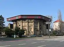 The Zionskirche is the name given to two Evangelical Lutheran church buildings in the Südvorstadt district of Dresden. The first, the Alte Zionskirche, was built by Schilling & Graebner from 1908 to 1912. This building was hit and badly damaged by fire during the bombing in February 1945. A temporary roof was later added and it is now preserved as a ruin, housing a lapidarium with 3000 sculptures. The parish, meanwhile, was housed in a barracks next to the ruins until the first stone of a new building, the Neue Zionskirche, was laid on Bayreuther Straße on 5 June 1981, as a gift from the Church of Sweden. With its construction overseen by Eberhard Burger, the new building was inaugurated on 31 October 1982.