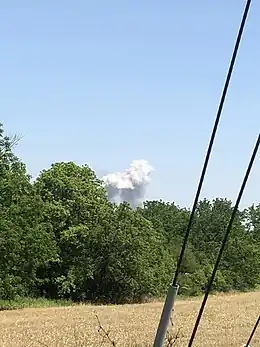 On June 9, 2020, a shipping container containing modified fireworks accidentally detonated along Orchard Road causing a large mushroom cloud that was visible for miles. The explosion set another shipping container ablaze and caused another explosion, causing fireworks to launch into the air, setting nearby corn fields on fire and damaging property. Firefighters were dispatched, the fire was quickly extinguished, and officials discovered the body of Brian Ehret, the owner of the property.