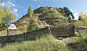 In the eastern part of the park Khomec' Mountain (306 m above sea level) is situated – a unique monument of steppe and rock vegetation, as sleep-grass dev'yasyl, tarragon and flax can be found here.[9] Further interesting natural spots are