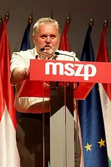 He lost his mandate in the 2014 parliamentary election. A confidant of newly elected party leader József Tóbiás, he was elected deputy chairman of the Hungarian Socialist Party on 19 July 2014. He regained his mandate via the party national list on 27 October 2014, when replaced László Botka, who resigned as MP.[3] Gőgös became a member of the Legislative Committee in June 2015. He secured a mandate from the MSZP national list in the 2018 parliamentary election, when Fidesz won its third consecutive supermajority. The entire Socialist leadership resigned, including Gőgös, who also announced his retirement from politics, abandoning the obtained mandate.[4]